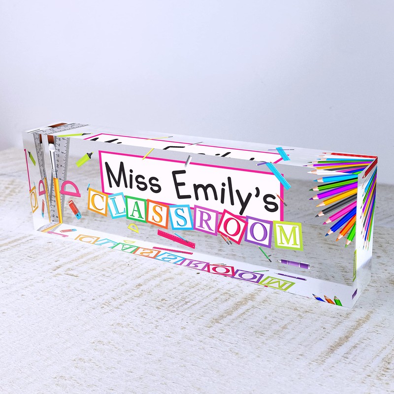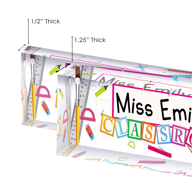 Artblox Acrylic Name Plate, 8'' x 2.5'', Personalized Teacher Desk Sign, Modern Signage