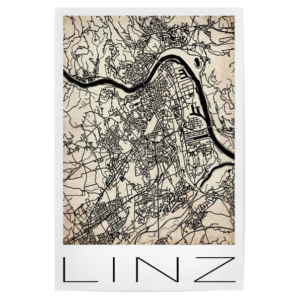 artboxONE Poster Retro Map Linz Vintage Artist David Springmeyer, 30x20 cm