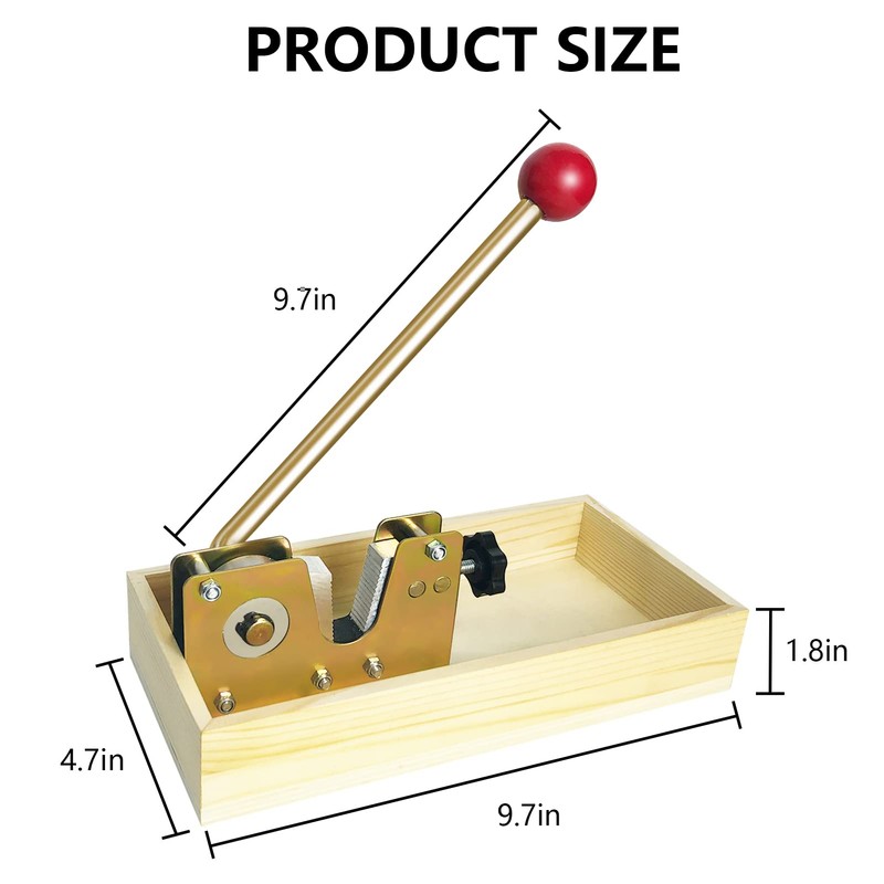 - Lever Nut Cracker: To open the jaws to their maximum width, the lever can be pressed forward. Similarly, to open the jaws to their minimum width, the lever can be pushed back. The nutcracker is suitable for nuts between 0.59in-1.18in in diameter. Additionally, turning the screw forward will make the gap between the jaws smaller, while turning it backward will make the gap larger.