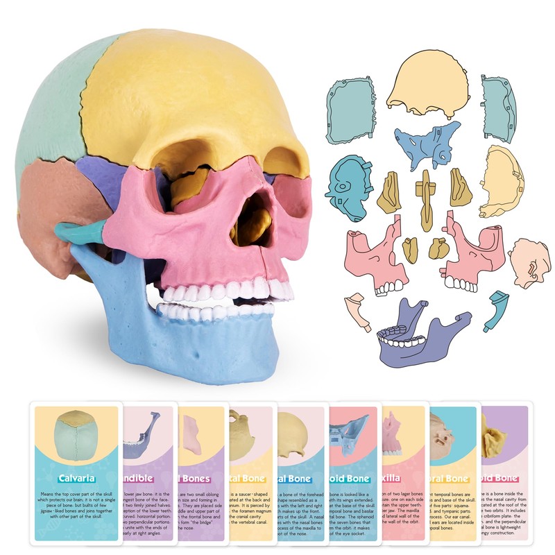 - 10 EDUCATIONAL CARDS: You'll be dealing with a little master of anatomy once they’re done with the skull jigsaw puzzle. 10 educational cards provide information about the different bones and include assembly instructions.