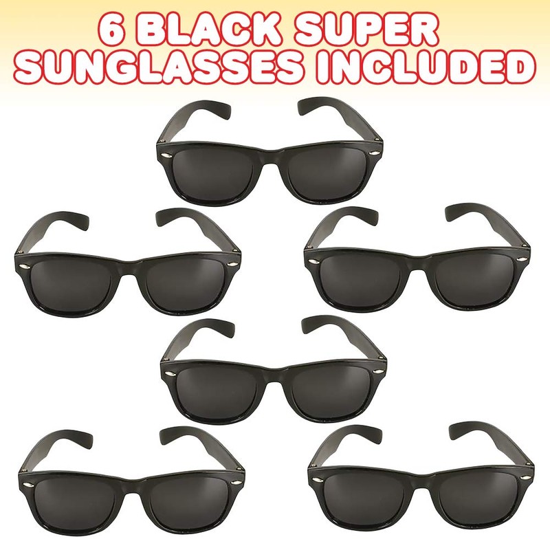ArtCreativity Black Super Sunglasses for Kids - Set of 6 - Cool Birthday and Pool Party Favors for Boys and Girls