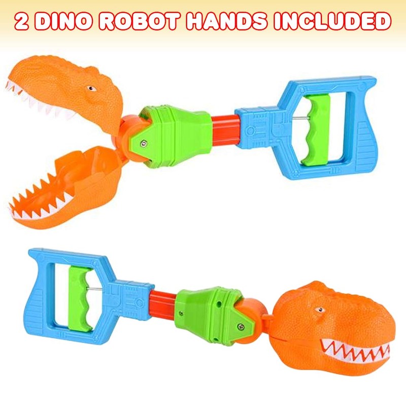 - DINO-RIFFIC GRABBER: An extension of your arm with ferocious vibes! This pack comes with a SET OF 2 dino robotic claw grabber toys, each measuring 14” x 3.5”. Pull and release the handle to grab everything from toys to clothes strewn on the floor.