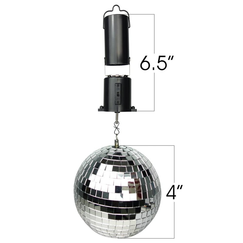- COMPLETE DISCO SET: Jazz up that party with a touch of entrancing pizazz! This set comes with a 6.5” mirror ball motor and a 4” disco ball with tiny mirrored squares that reflect light. Hang it in the middle of the dance floor or stage and make that soiree one to remember.