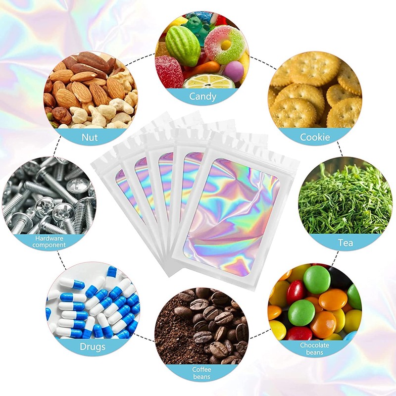 - 【QUANTITY】100 pieces of resealable holographic bags in the package, enough for your daily use.Please note that the actual color may appear in a slight difference under different light,angle and screen