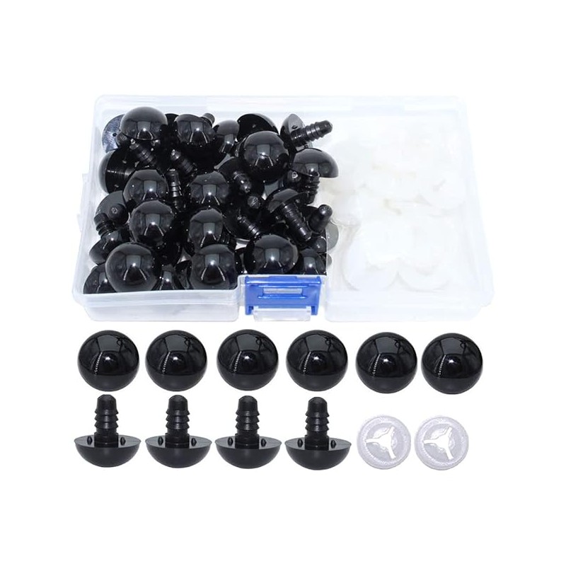 ARTCXC 50Pcs 20mm Black Solid Plastic Safety Eyes Craft Eyes with Washers for Doll, Puppet, Plush Animal DIY Making