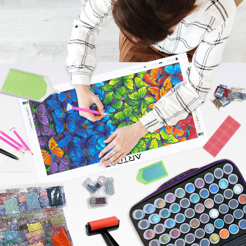 The biggest highlight of this diamond art tools is that it can be DIY at will, such as handicrafts, key rings, necklaces, earrings, rings, scrapbook items, mobile phone cases, make-up, etc. ARTDOT DIY 5D diamond painting kits is a great gift choice for craft lovers, family and friends.