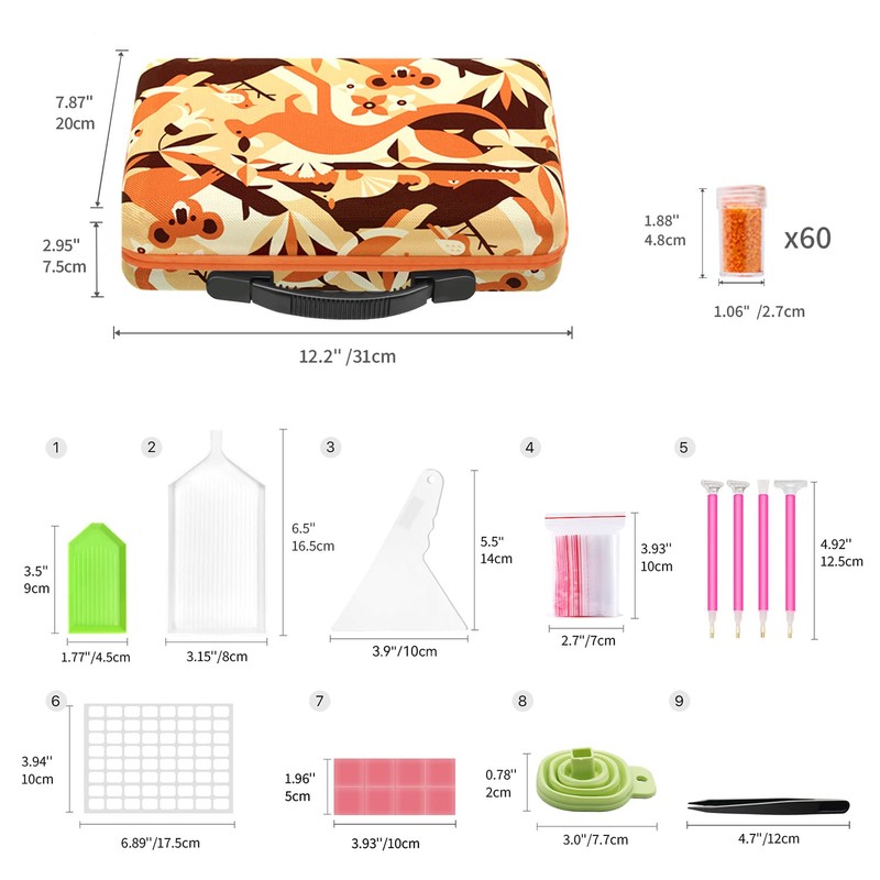 - COMPLETE TOOLS SET - Diamond art kits includes everything you need: 4 pens with 3,6,9 drill placer, 64 pcs label, funnel, 2 trays, 10 waxs, tweezer and 20 OPP bags. Offering great value, this kit fulfills every requirement of diamond art enthusiasts