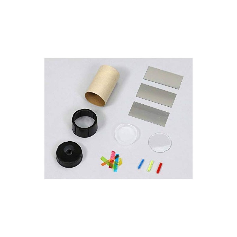 - Set Includes: Paper tube x 1, cap (top) x 1, cap (bottom) x 1, PVC mirror x 3, transparent case x 1, lid x 1, color cellophane x 1, color molding x 1 set