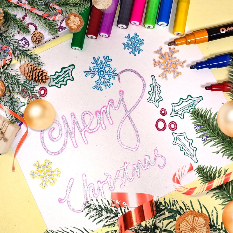 Artecho 12 Glitzerstifte Outline Stifte, Glitzerzauberstift, handgemacht, kreativer Pinsel, Geeignet für Anfänger und Profis, ideal als Geschenk zu Thanksgiving oder Weihnachten