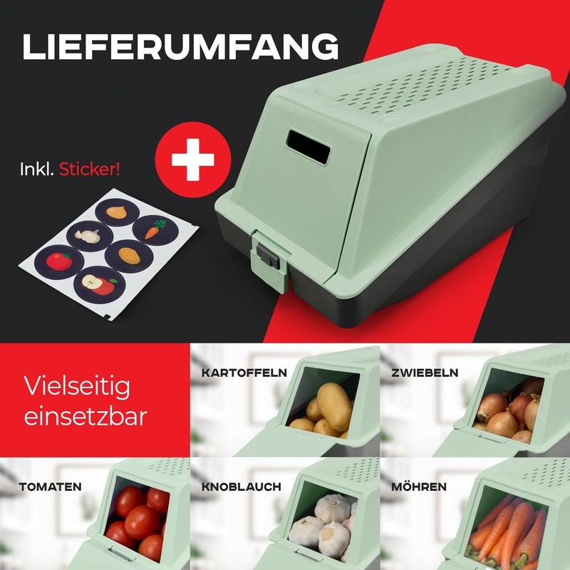 - Optimal vegetable and potato storage - includes vegetable stickers for labelling. The ARTECSIS potato storage box provides fresh potatoes, onions and garlic and creates order in the kitchen, pantry or cellar