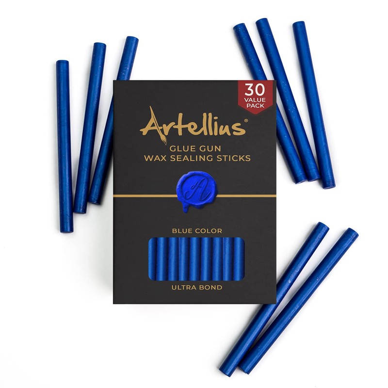 Artellius Premium Sealing Wax Sticks (Bulk 30 Pack) - Blue Wax Seal Glue Gun ...