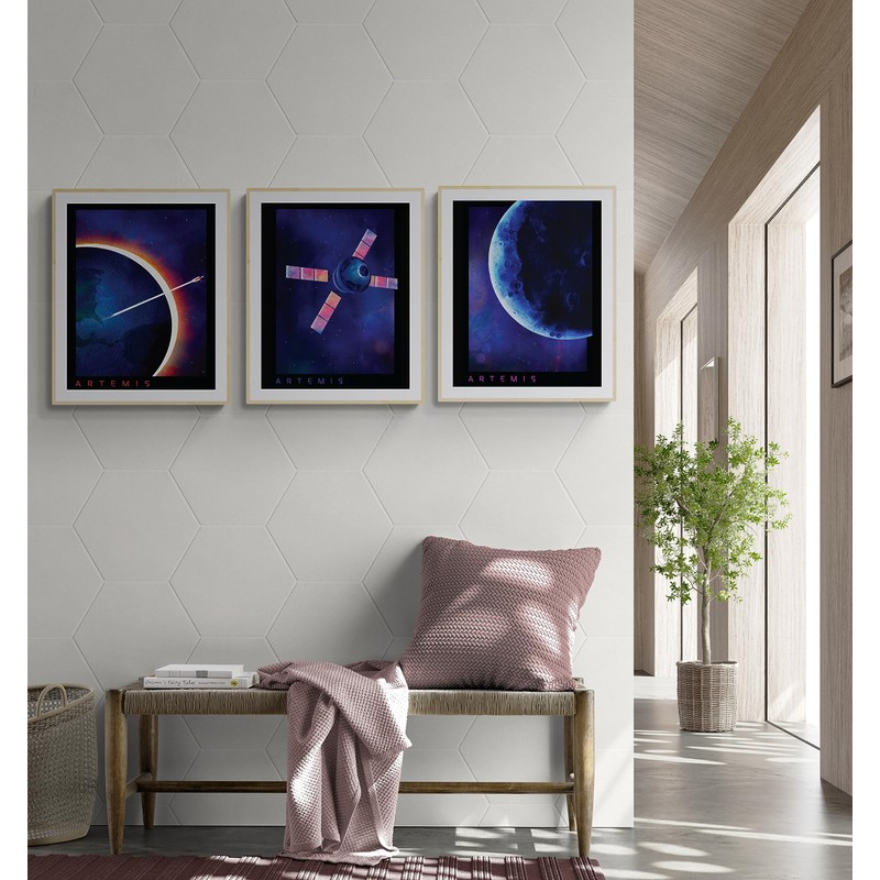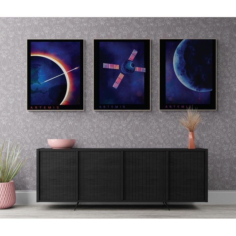 Artemis Watercolor Set of 3 Moon Mission Plan Rocket Launch Living Room Wall Art Prints (ArtemisWCSet, 16x20)