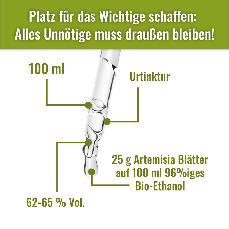 Ingredients: bio-ethanol, spring water from the Alps, Artemisia annua.