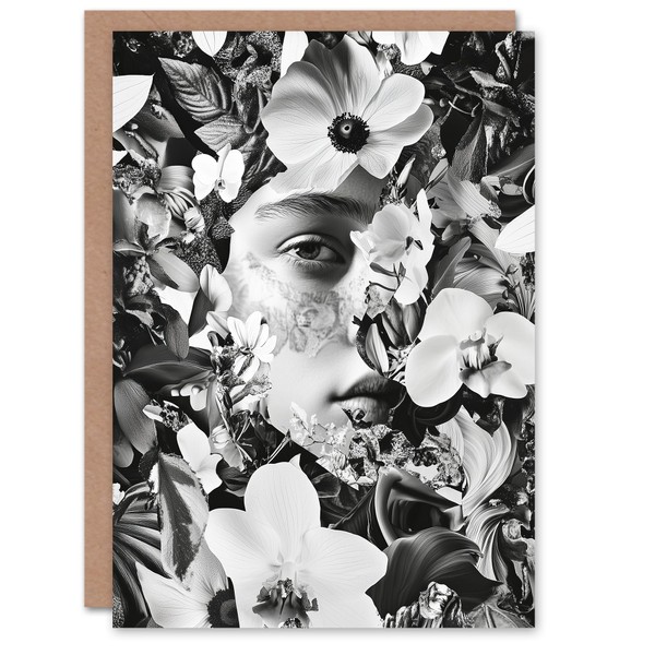 Artery8 Greeting Card Spring Face Flower Blooms Black White Collage For Her Woman Birthday Card