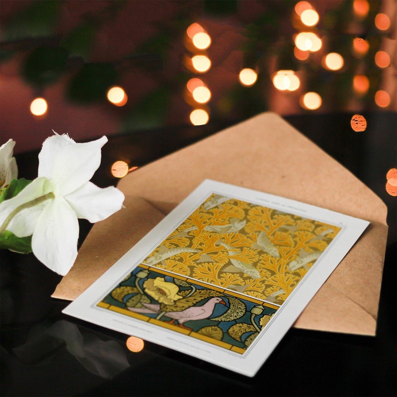 Artery8 Maurice Pillard Verneuil Art Card Poppy Pigeon and Coral Fish Patterns