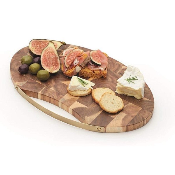 Artesa End Grain Oval-Shaped Wooden Cheese Board/Serving Platter with Brass-Effect Handle, 32 x 20.5 cm