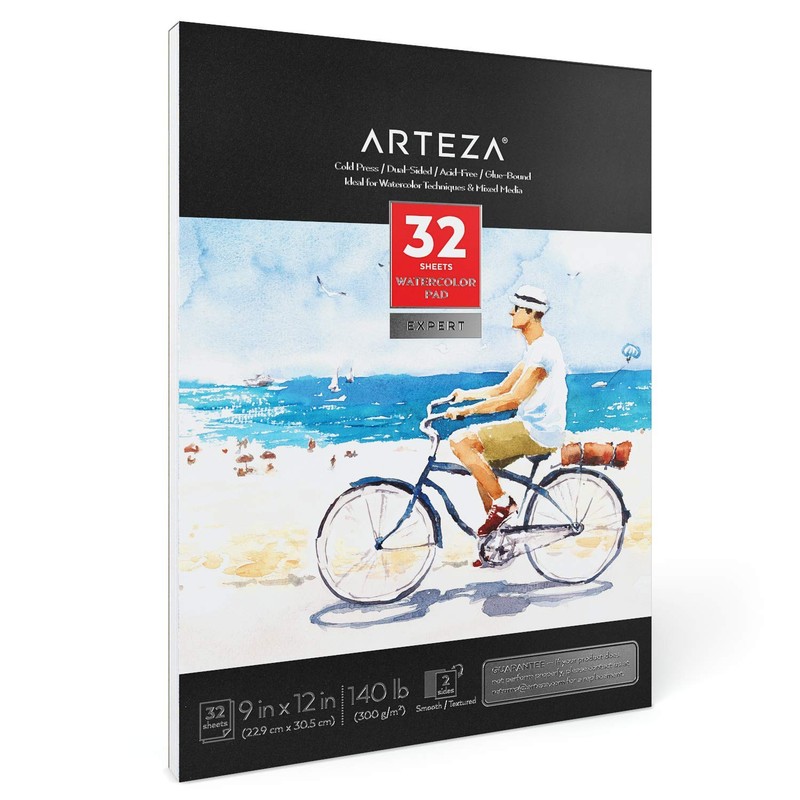 Arteza - Almohadilla de acuarela experta de 9 x 12 pulgadas, 32 hojas (140 libras/300 g/m²), prensado en frío, papel última intervensión de ácidos, suministros de arte para técnicas de acuarela y medios mixtos