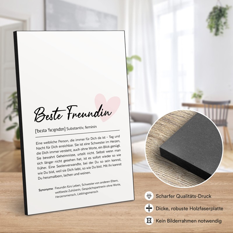 ARTFAVES® Word explanation best friend (handwriting) | definition picture as a gift | wooden sign with saying on the theme of friendship
