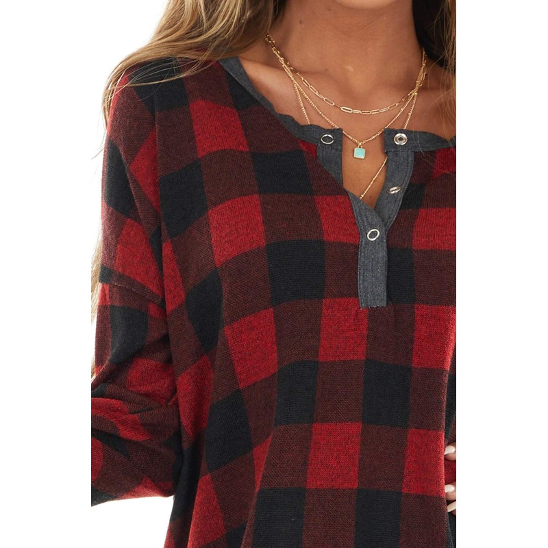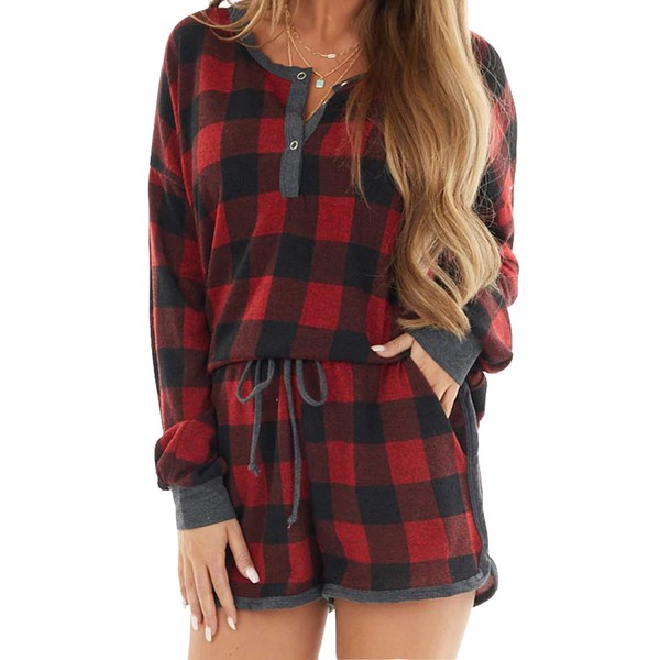 Artfish Women Christmas Pajama Set Shorts Soft Buffalo Plaid Loungewear Comfy Pjs Red,M