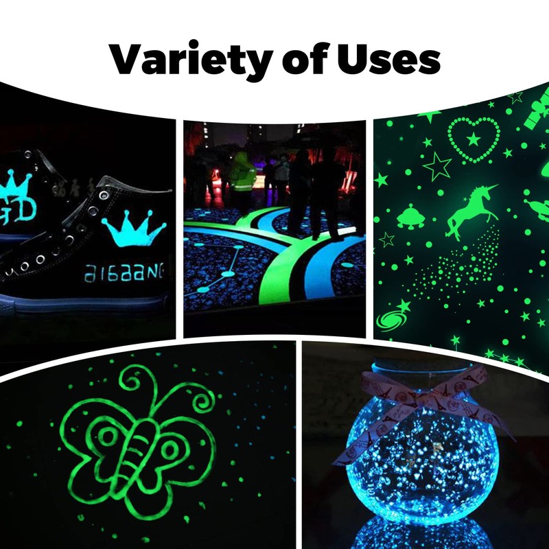- Glow in the dark: ARTFLY glow-in-the-dark colour contains rich pigments that ensure that each colour shines for hours after absorbing light under light sources. It is recommended to be used with black light or LED light for a better effect.