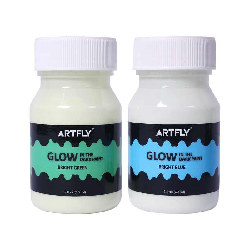 - Versatile: ARTFLY in dark luminous colours can be used on most painting surfaces, including canvas, paper, wood, leather, model and crafts. This Glow in The Dark acrylic paint is perfect for Halloween and Christmas costumes, party decorations and DIY projects.