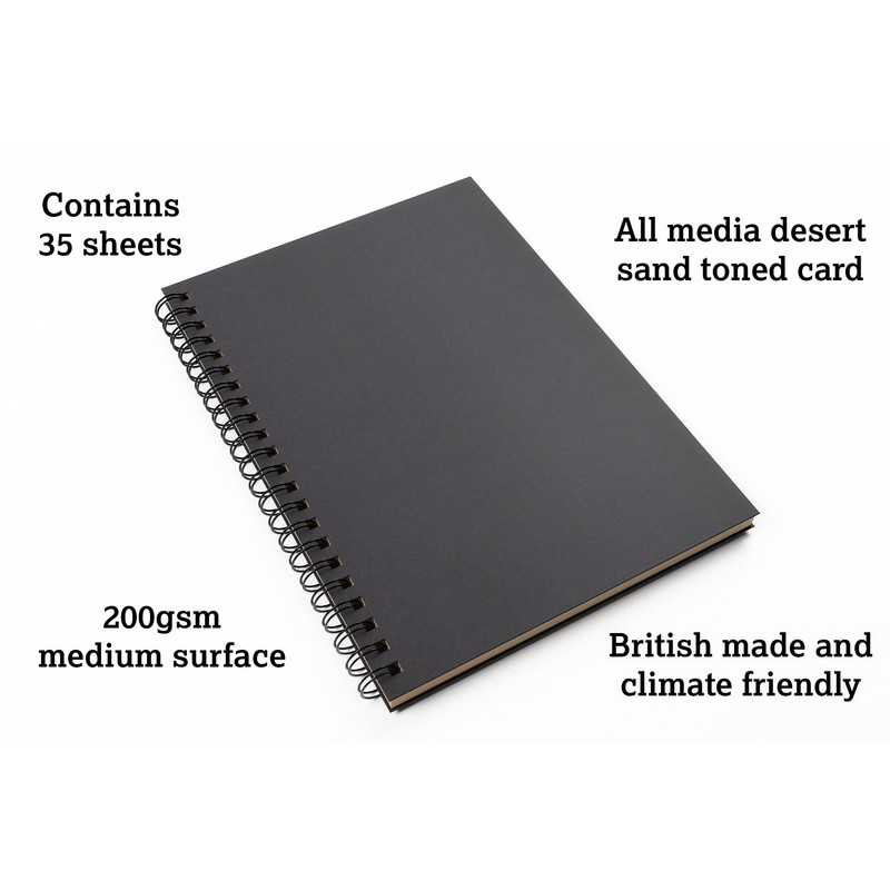 - A4 sketchbook containing 35 sheets of 200gsm, acid free, premium desrert sand tan card with a medium surface - making it suitable for a variety of techniques including chalk and pastel.
