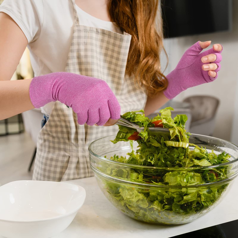 • Open finger design lets you release your hands to do everyday tasks like knitting, typing, gardening, cooking.