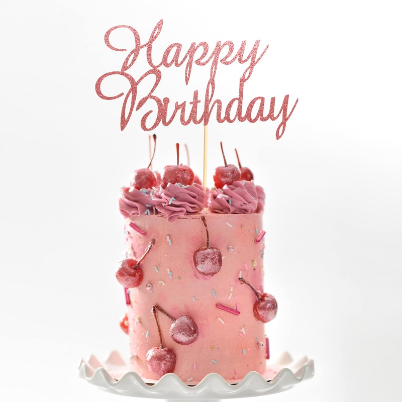 - Package include 1pc rose gold glitter happy birthday cake topper. Size fits most cake and is the ideal for cakes.