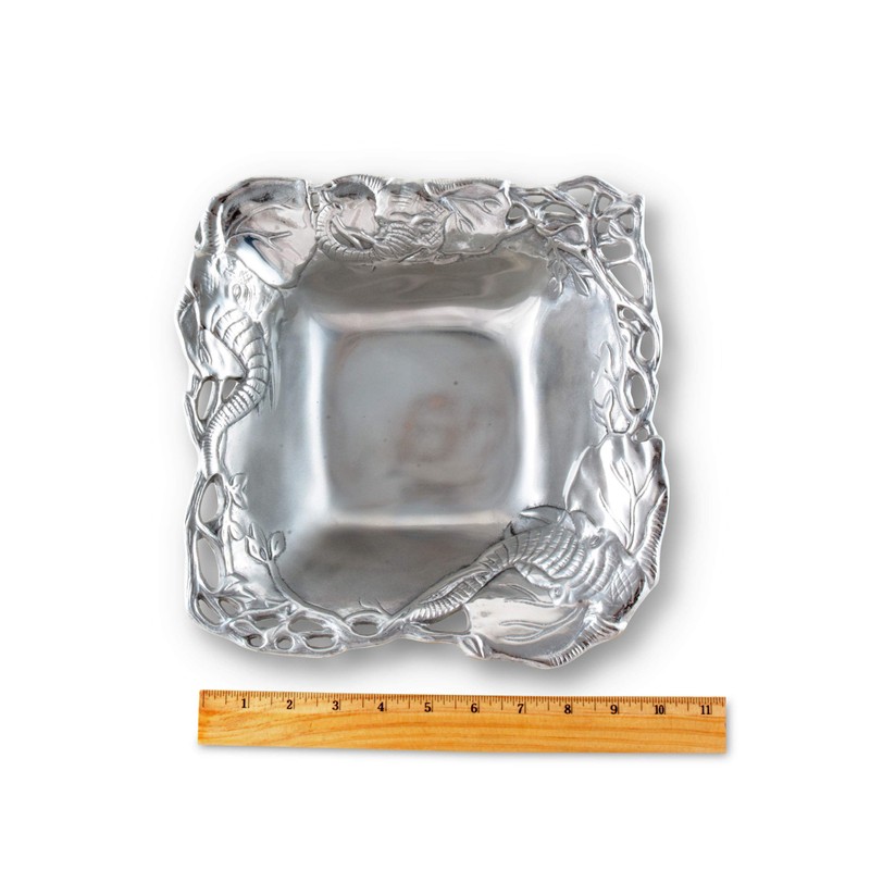 Arthur Court Designs Aluminum Metal Elephant Salad/Fruit Serving Bowl and Food Servers Set 3- Piece Servers and Bowl 9.75 Inch Diameter