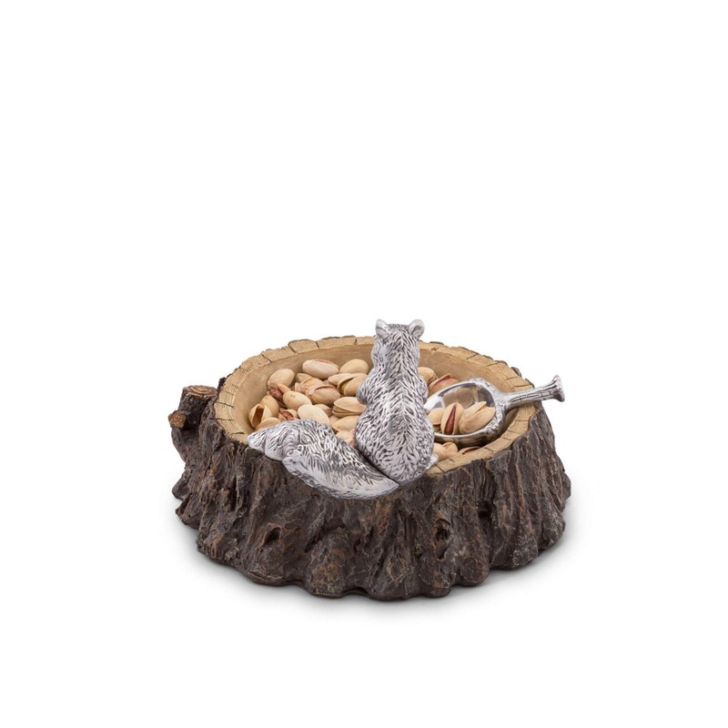 Arthur Court Designs Aluminum Standing Squirrel on Log Nut/Candy/Snack Bowl Dish 7 inch Diameter
