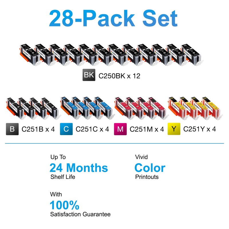 - Includes 12 large Black 251XL, 4 small Black 251XL, 4 Cyan 251XL, 4 Yellow 251XL, and 4 Magenta 251XL Arthur Imaging ink cartridges (total 28 Pack)