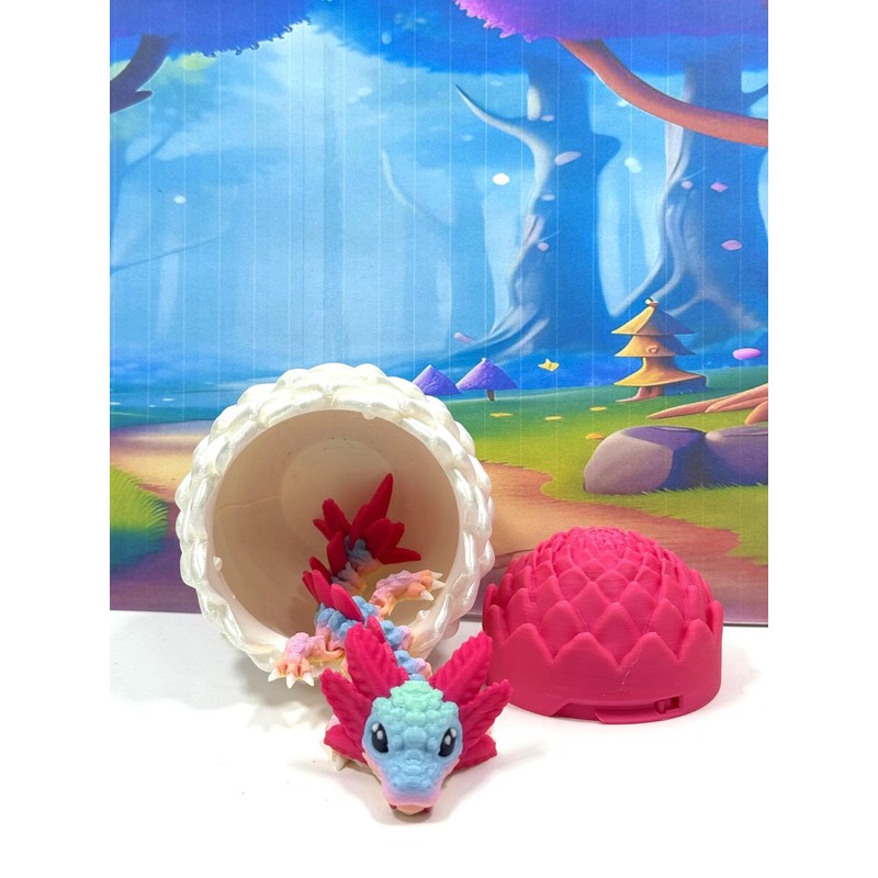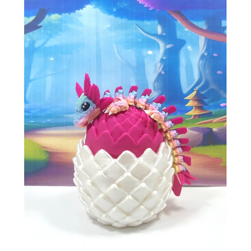 Articulated Baby Dragon with Egg, 6" 3D Printed Multi Color Axolotl Baby Dragon, Fidget Toy for Autism ADHD, Executive Desk Toy BD008-MAC-WMAGE