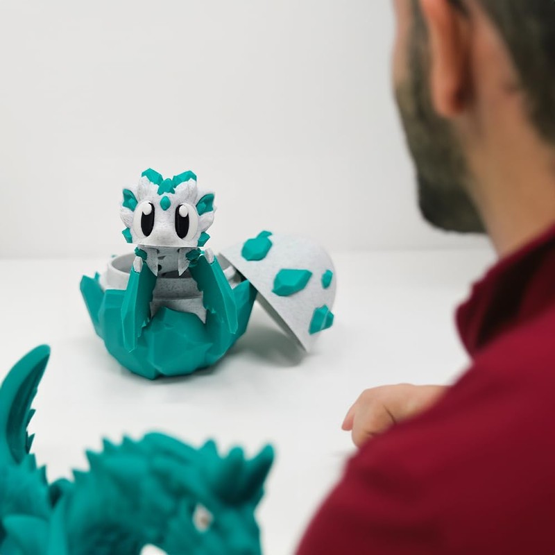 The vibrant 3D printed egg, resembling a mystical dragon egg, boasts captivating crystal-inspired textures and doubles as elegant decor. From 3D dragon egg collectors to fans of 3D printed dragons, this is a must-have item that adds fantasy flair to any space.