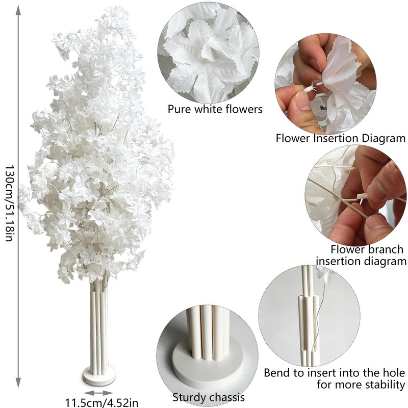 Artificial Cherry Blossom Tree with Stand, White Wedding Party Flower Tree Decoration, Everlasting Flower Tree, Wedding Party Decoration Flower Guide