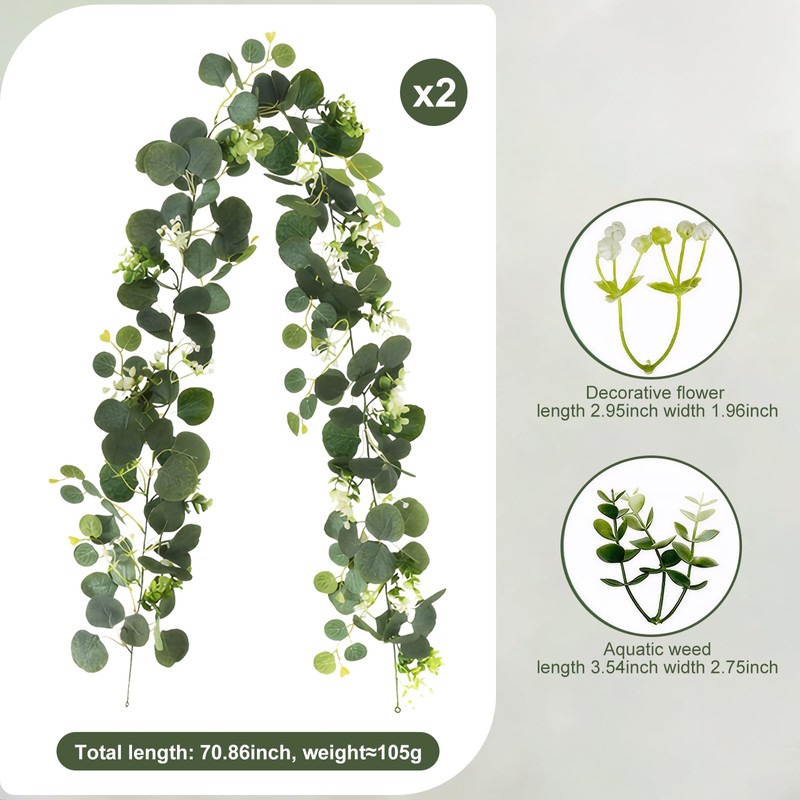 Artificial Eucalyptus Rose Vine, 2 Styles, Climbing Plant for Wedding Backdrop, Wall Decor (5.9Ft 2-Piece Set of Flower Buds)
