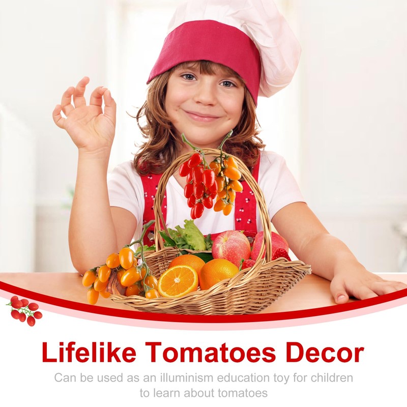 • 【Artificial Tomatoes Decor】Simulation tomato decorations include 2 bunch of tomato, the length is about 20cm, every bunch plastic vegetables includes 16 pieces mini tomatoes (each garlic about 3.5 x 3cm)