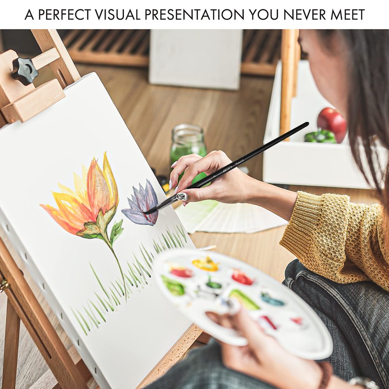 - 🎨用途の広いペイントブラシ-これらのブラシは、水彩絵の具、アクリル絵の具、ガッシュ、油絵の具、テンペラなどのさまざまなメディアに適しています。