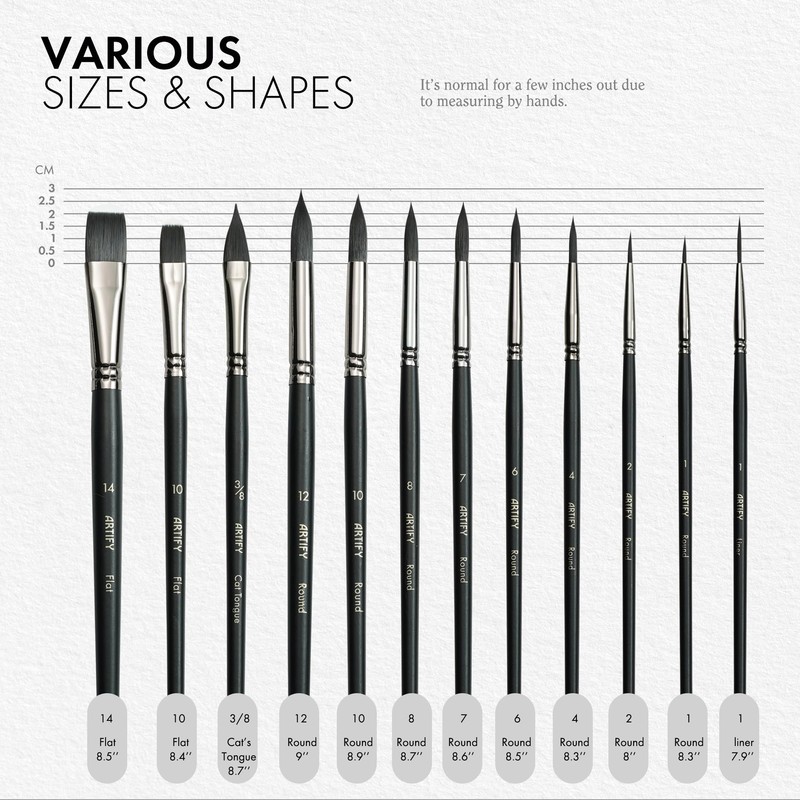 - 🎨形状とサイズの選択されたコレクション-新鮮なインスピレーションを生み出すために、Artifyは12種類の形状とサイズのブラシをセットとして選択しました。 ペイントブラシは、詳細なペイントや最大のコートの用途に関係なく、すべてのストロークに命を吹き込むことができます。