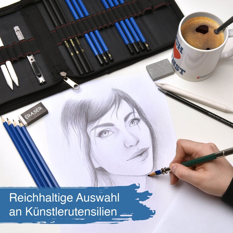 - For all skill levels - Whether beginners, hobby artists, advanced or professionals, the pencil set for drawing is ideal for any skill level. With the artist pencil set, you can easily achieve 3D effects.