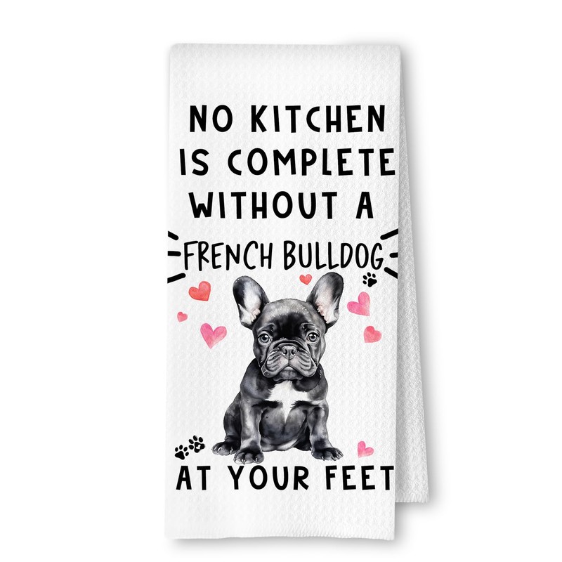 ArtisaEura French Bulldog Funny Dog Kitchen Towels for Women - French Bulldog Waffle Weave Hand Towels,A Kitchen is Not Complete Dish Towel for Home Bathroom,16×24 Inch