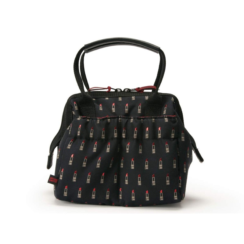 Stable, stylish yet cute expression. The most distinctive aspect is its mouth. The clasp opens wide, so there is no need to press the mouth with one hand when putting in and taking it out. In addition, there are excellent features such as pockets on the four sides of the bag, holders and a "squishy" pocket on the outer side. This item boasts a utility item that can be used as a makeup box or handbag.