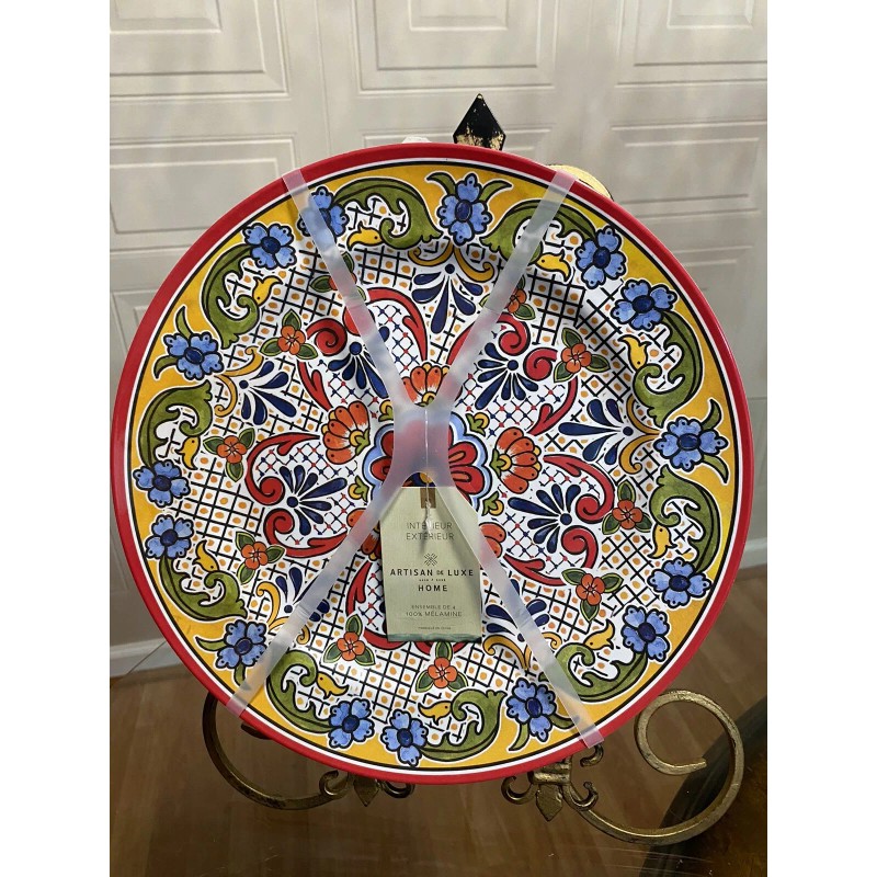 Artisan De Luxe Melamine Spanish Tile Medallion Dinner Plates 11" - Set of 4