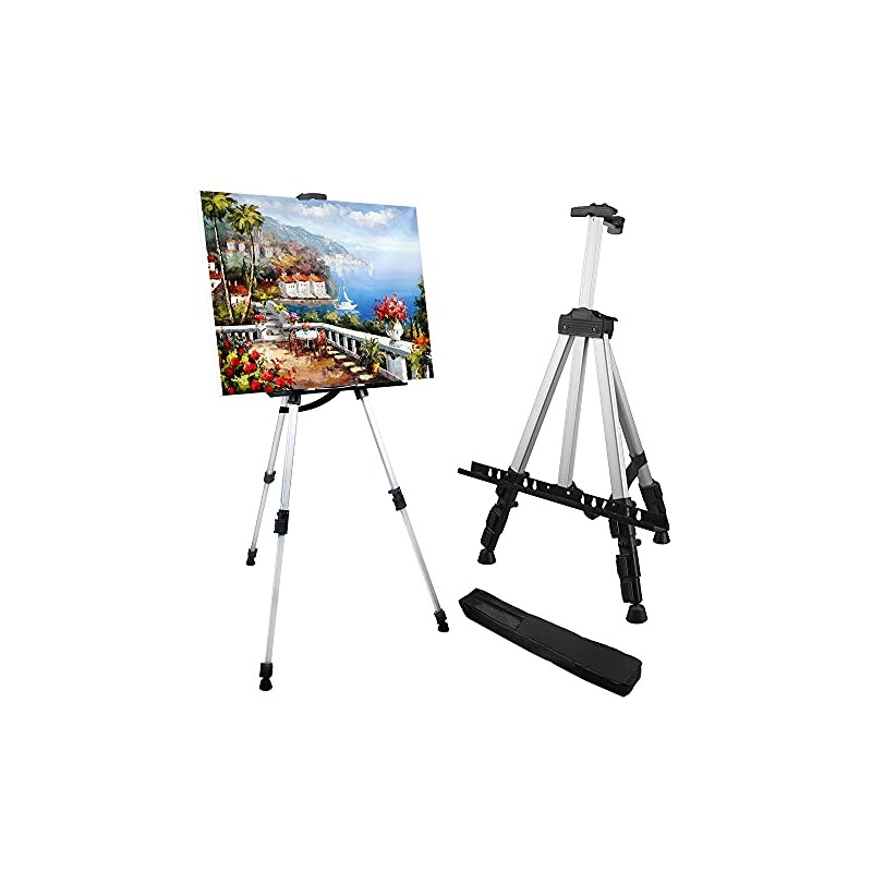 - [MATERIAL AND STABILITY PERFORMANCE] painting easel for adults adopted sturdy and durable aluminum artist easel Stand- lighter and more durable than other material easels; The spring clip on top of the tabletop easel makes the canvas less likely to fall,Makes the painters easel for adults more stable.