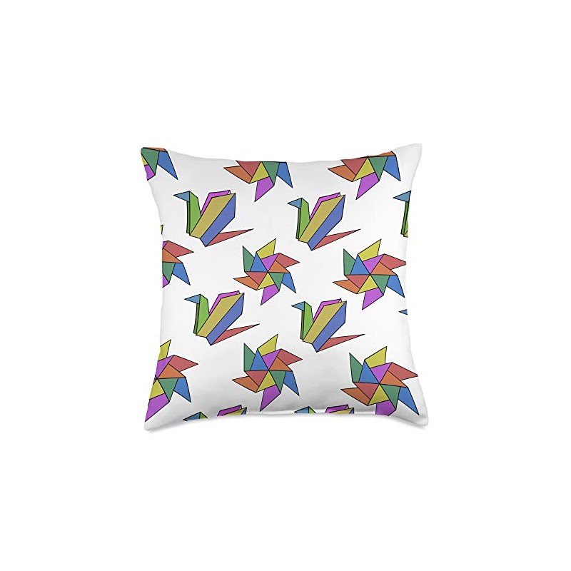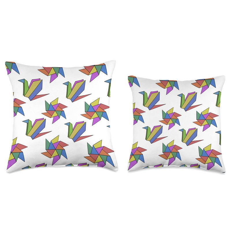 Artist Japanese Art Colorful Paper Crane Pattern Origami Throw Pillow