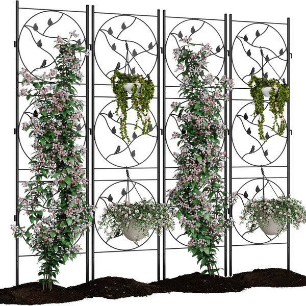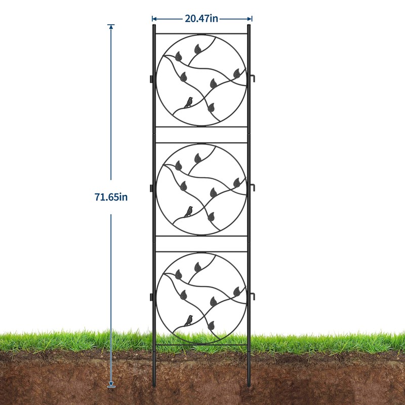 - BEYOND BASIC TRELLIS MAGIC: Use as lavender frame, rose tower, OR tomato cage alternative. Artistic floral and bird motifs make it easy to decorate the patio. Wrap fairy lights through Garden Trellis for twilight drama!