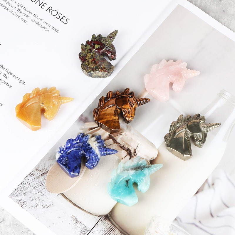 - 【Carved Unicorn Ornament】 : Size about 2 inches tall. Every unicorn crystal figurine is unique, the stripe or color will vary from lot to lotyou will receive ones similar to the image shown.