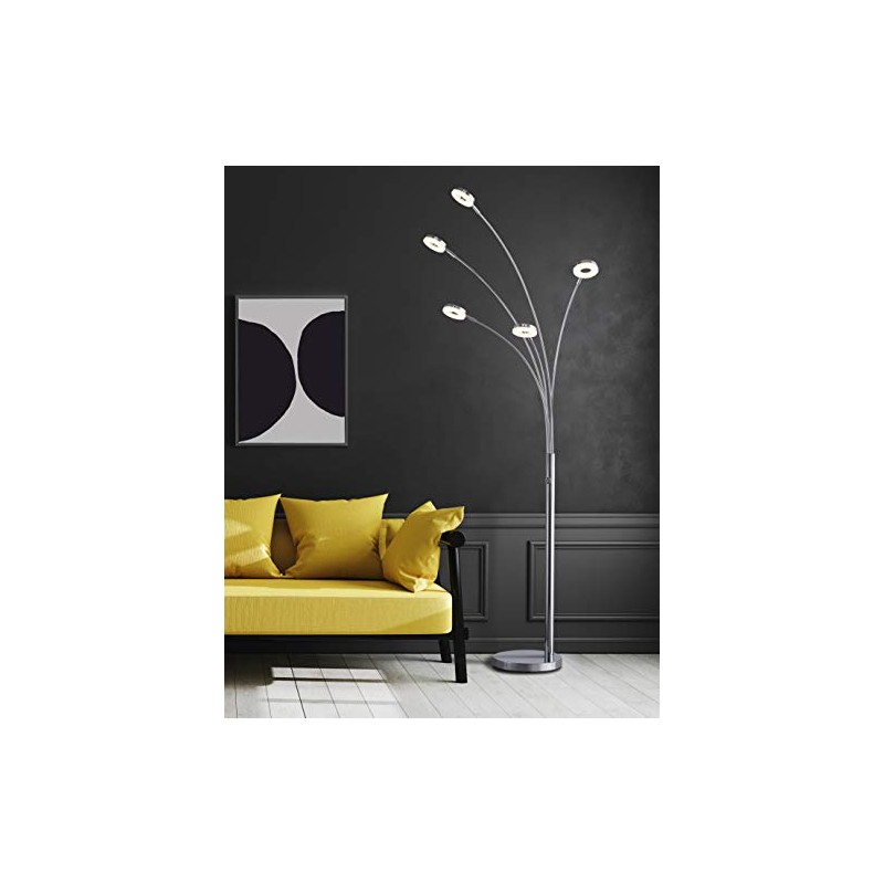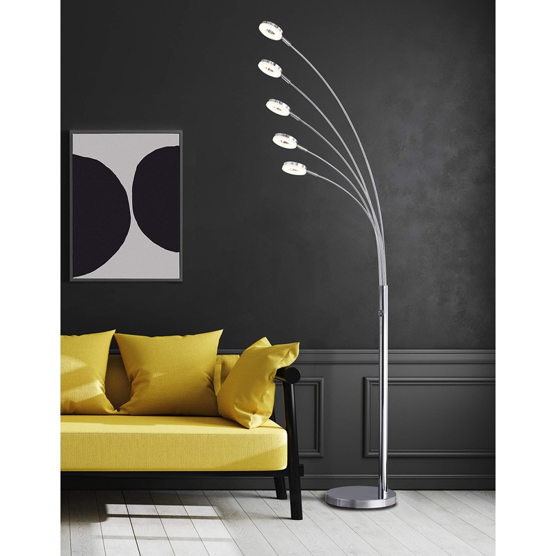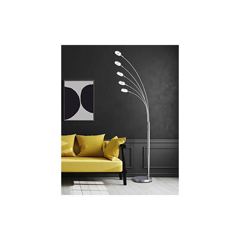 Light up your living room, bedroom or office with this sleek and modern LED 5-arched Modern Chrome integrated LED Floor lamp from Artiva USA, the "UFO". . A perfect addition to any rooms with modern or contemporary decors . The "UFO" adjustable LED floor lamp hold super bright and warms(3000K) LED lights with Touch dimming function. The curved design adds a soft note to your decor. Standing over 6 feet(73"), the fixture has a statuesque appearance that draws attention. This Artiva USA design LED floor lamp allows you to direct the light wherever you need it and provide ample lighting for reading, writing or create a spot light in the setting or in the center of your living room. Heavy weighted base grants perfect balance and prevent the lamp from tipping. A Perfect addition to any home or office.