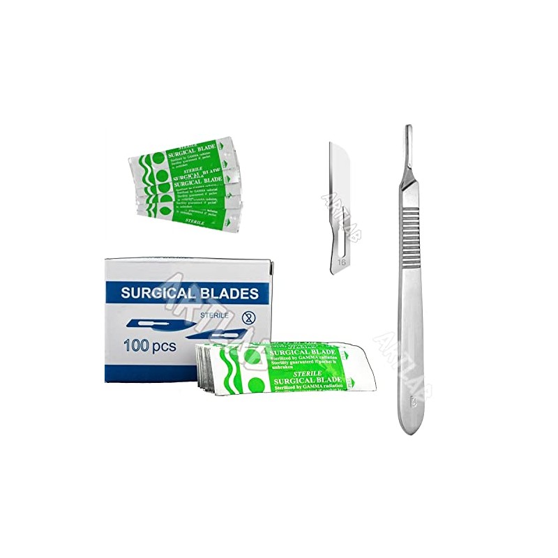 - ArtLab-Pack of 100 Scalpel Blades #10,Scalpel Blades for Knife Scalpel, High Carbon Steel Dermablade Scalpel Blades. Individually Wrapped , Sterile +Free Handle