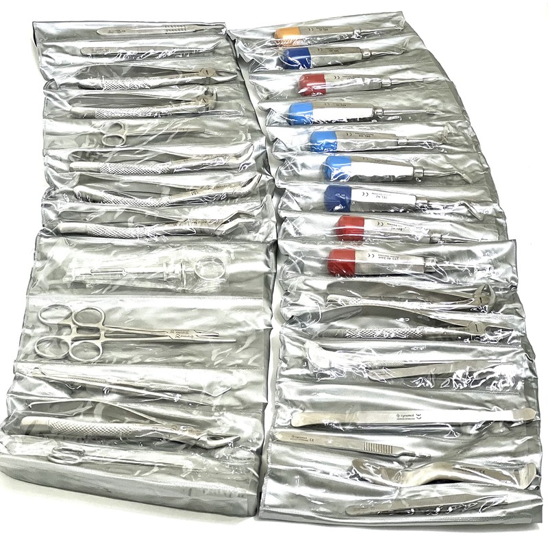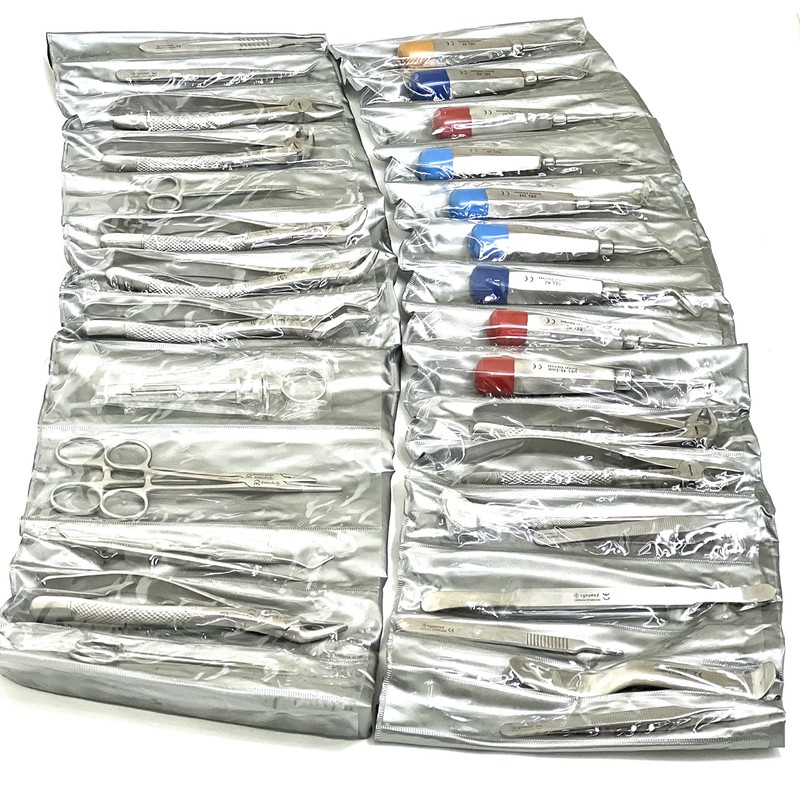 - 1 GERMAN KELLY HEMOSTAT FORCEPS STR 5.5" 1 GERMAN PERIOSTEAL ELEVATOR MOLT M9 1 GERMAN PERIOSTEAL ELEVATOR SELDIN S23 1 GERMAN DENTAL MIRROR #5 1 GERMAN COLLEGE COTTON PLIERS 1 GERMAN DENTAL EXPLORER PROBE #5 1 GERMAN MINNESOTA CHEEK RETRACTOR 1DENTAL SYRINGE 18CC 1 SCALPEL KNIFE HANDLE #3 1 SCALPEL KNIFE HANDLE #4 10 SCALPEL BLADES #10 FOR #3 HANDLE 10 SCALPEL BLADES #11 FOR #3 HANDLE 10 SCALPEL BLADES #15C FOR #3 HANDLE 10 SCALPEL BLADES #21 FOR #4 HANDLE 10 SCALPEL BLADES #23 FOR #4 HANDLE
