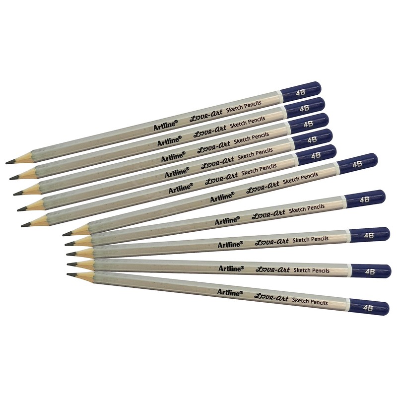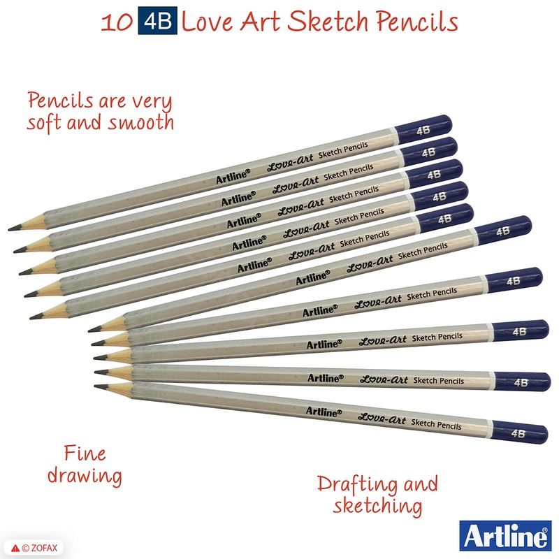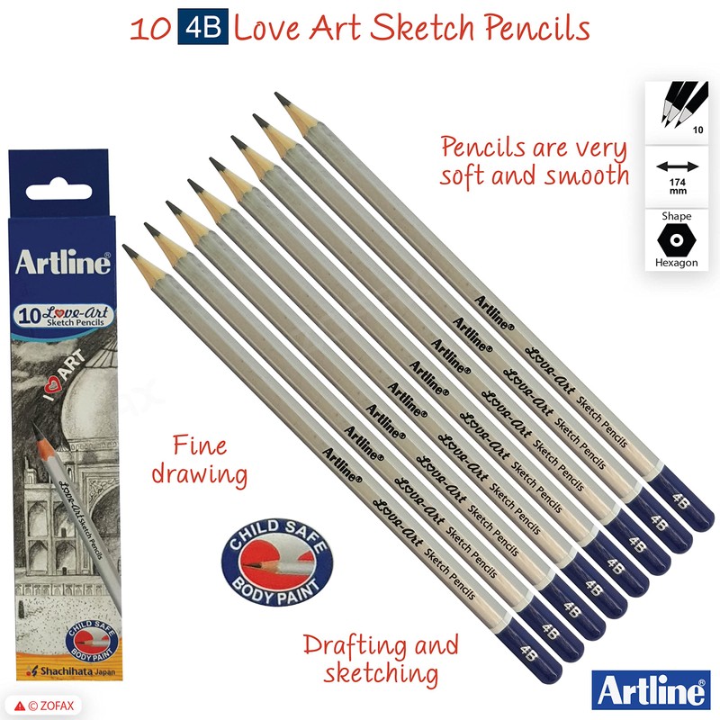artline 10 x 4B Graded Artist Professional Pencils Write Draw Sketch Shade + ZOFAX Biro BLACK Pen